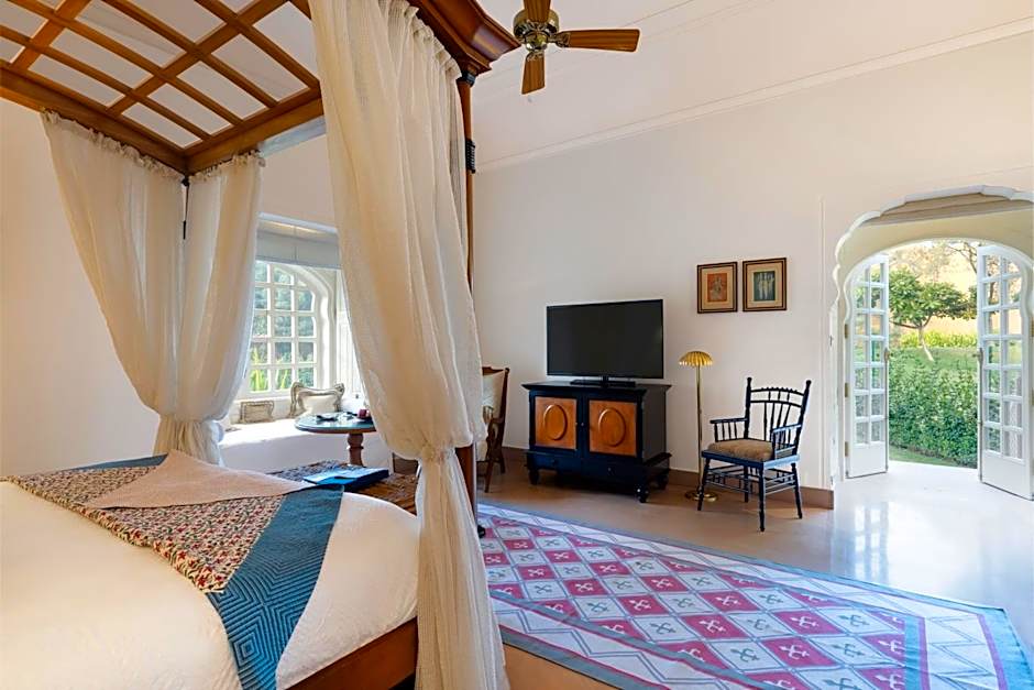 The rooms are separated in clusters, each with a central courtyard featuring a garden and fountain. The elegantly appointed bedroom features a four poster king size bed, a dressing room with a walk-in closet and a spacious marble bathroom with sunken bath and separate shower overlooking a private walled garden.